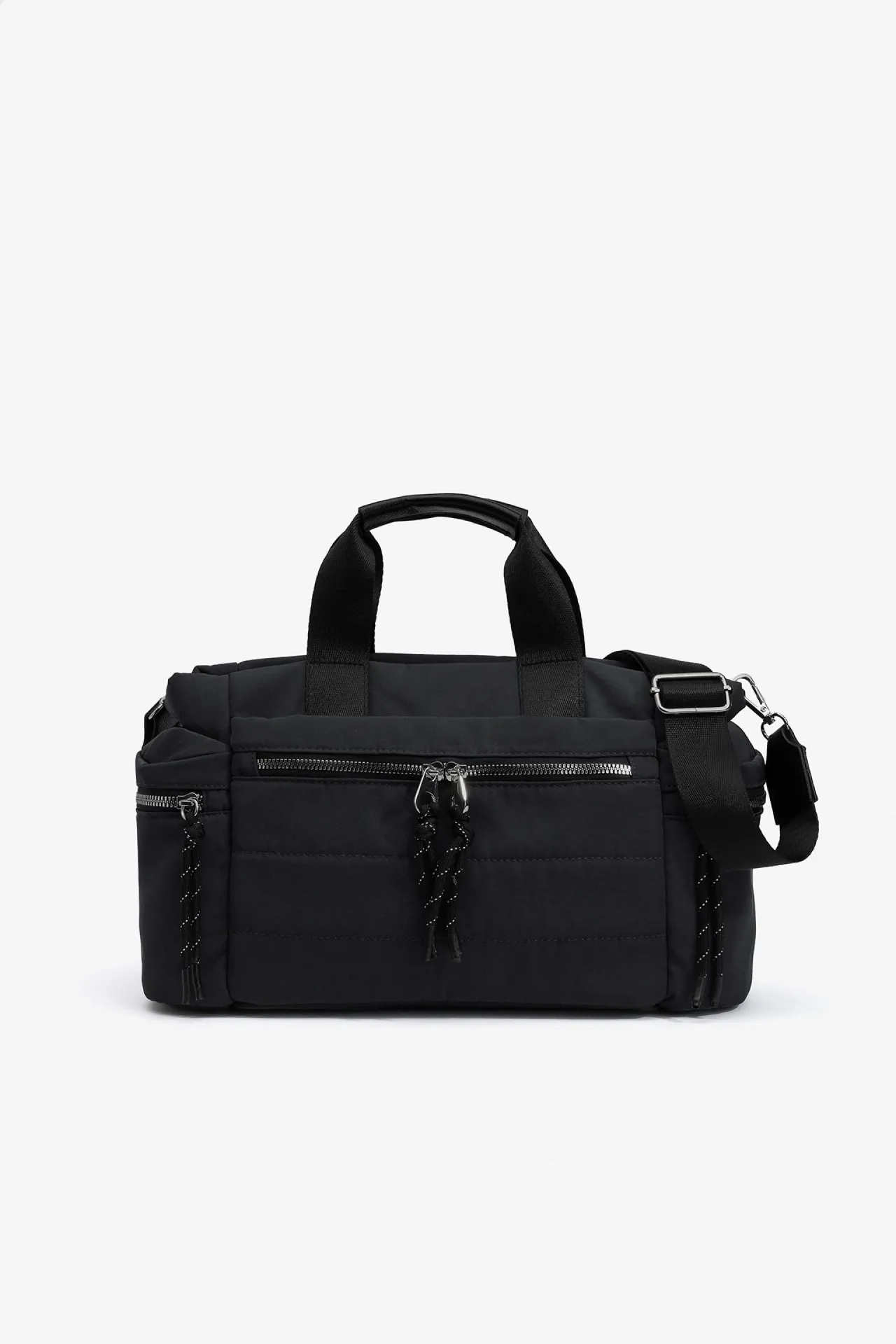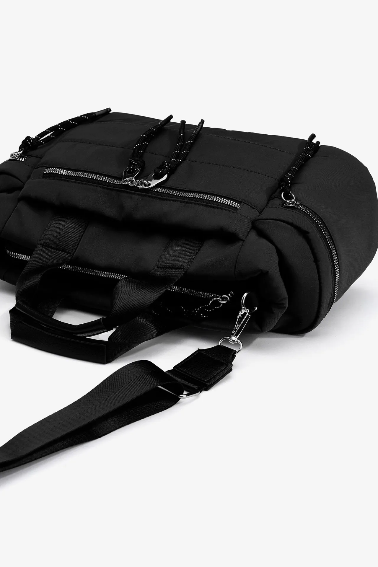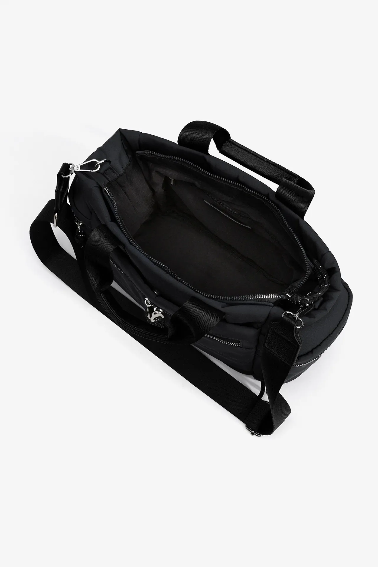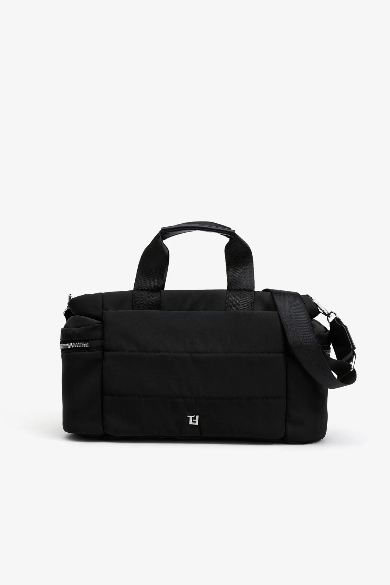 Diseñado para adaptarse a tu ritmo de vida, este bolso negro es una elección práctica y estilosa. Su diseño sobrio y funcional ofrece el equilibrio ideal entre estética y utilidad. Equipado con varios bolsillos exteriores e interiores, permite organizar tus objetos personales de forma cómoda y segura. La correa ajustable y extraíble ofrece múltiples formas de llevarlo, ya sea al hombro, cruzado o por sus asas superiores. Su estructura acolchada aporta un toque contemporáneo y urbano que encaja con cualquier outfit.