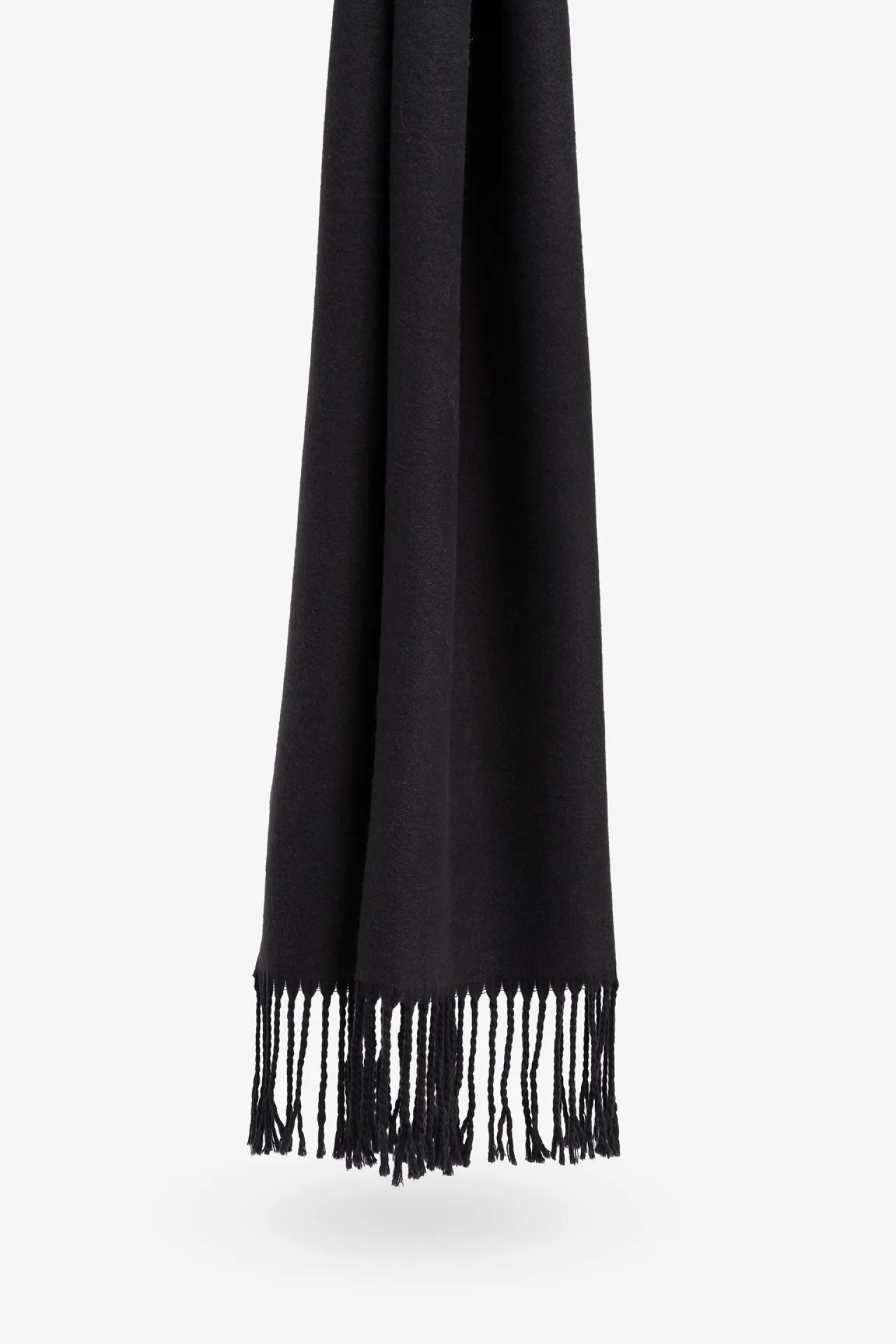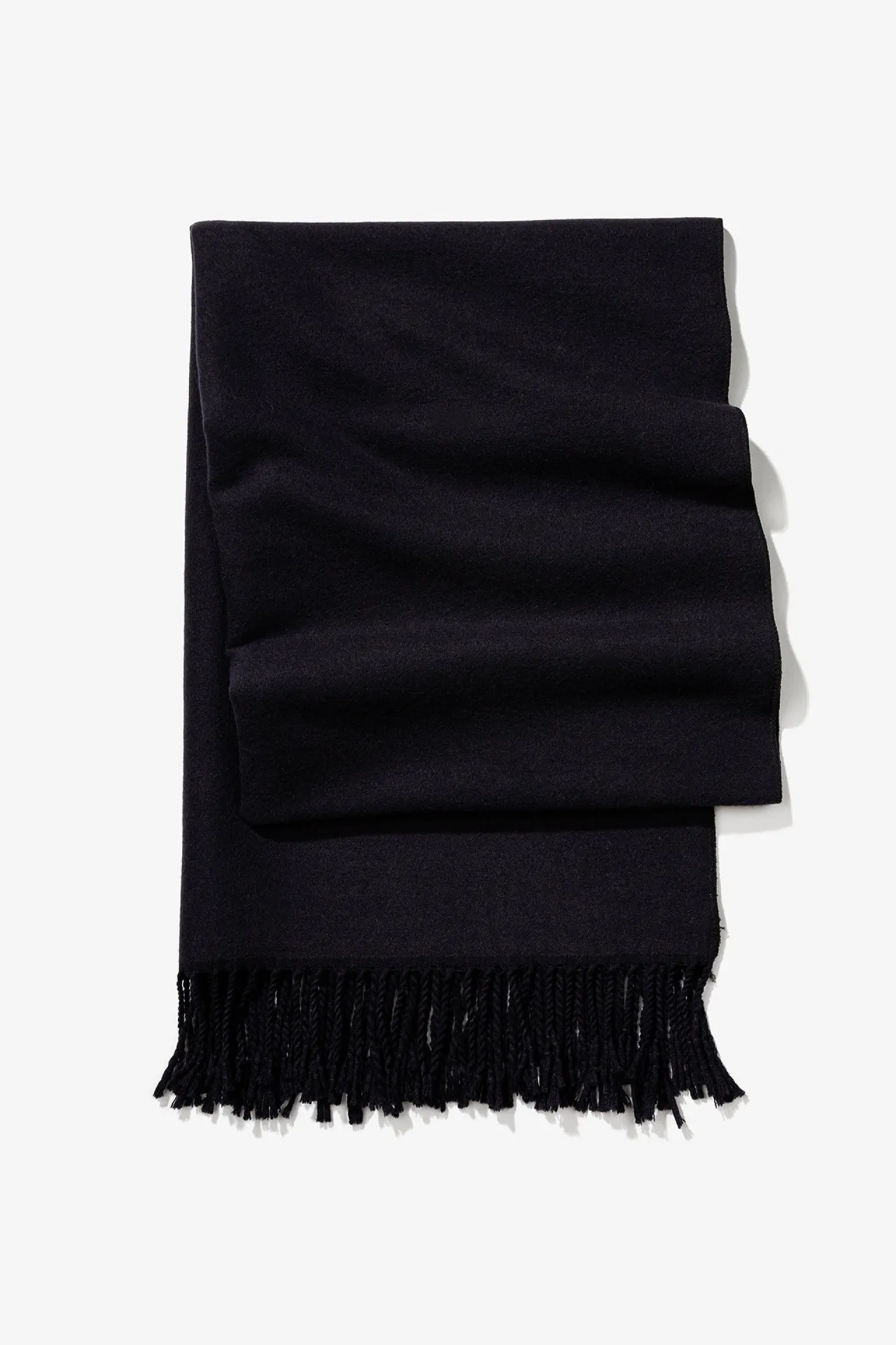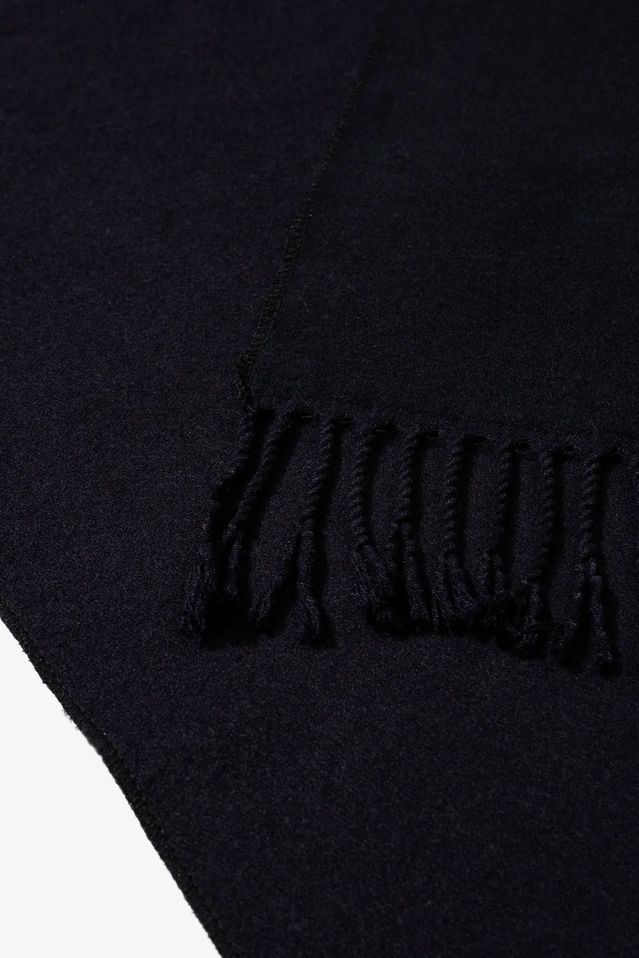 Bufanda reversible azul marino con flecos, de tacto suave y diseño clásico. Perfecta para aportar estilo y abrigo en los días fríos.