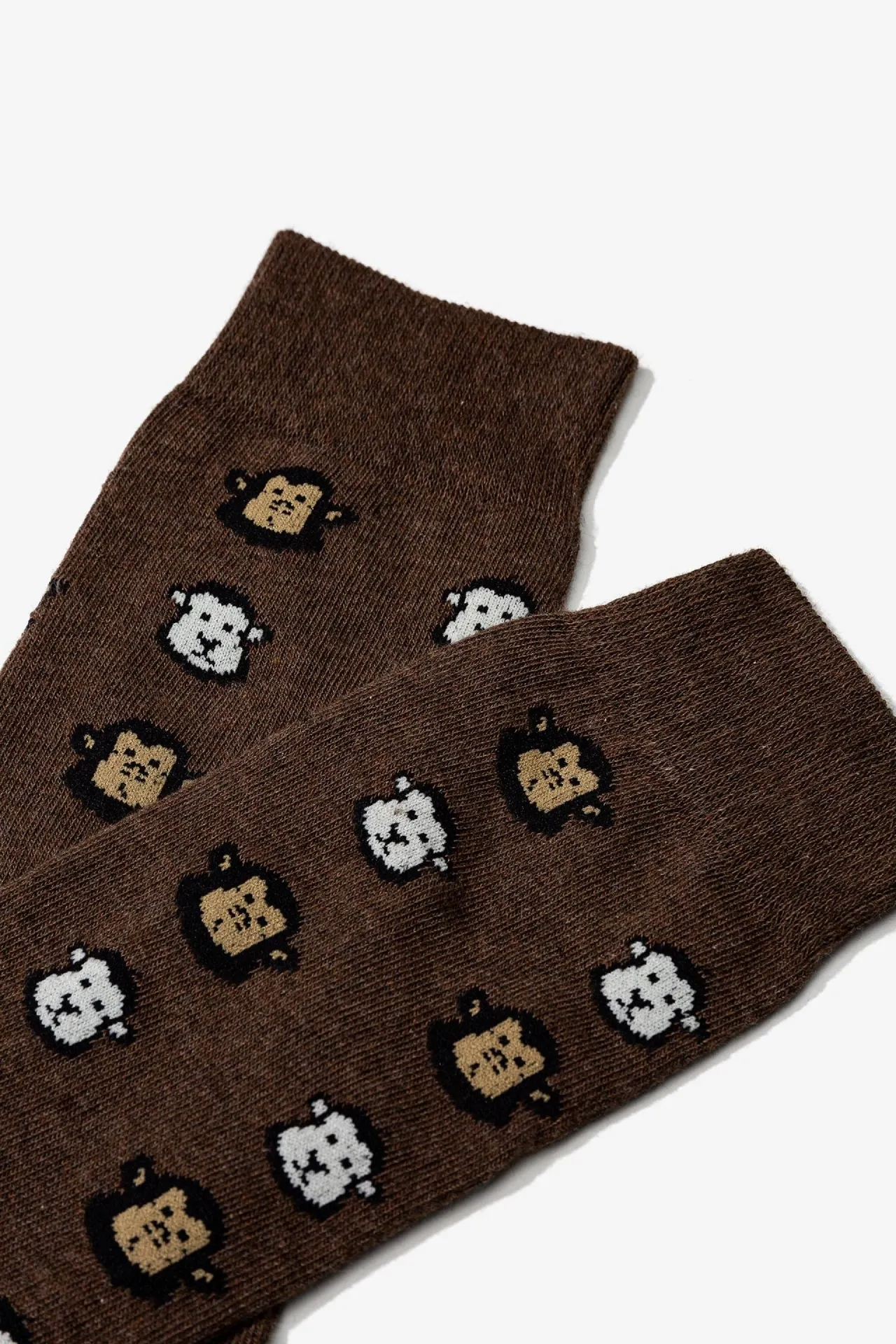 Calcetines marrones con estampado de monos, cómodos, divertidos y suaves. Talla única para hombre (40–44).