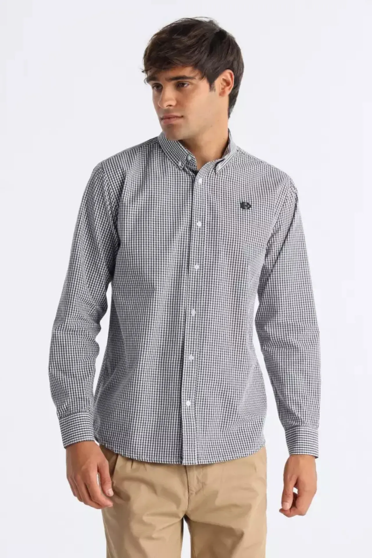 Camisa de cuadros Vichy para hombre, confeccionada en algodón 100 %. Patrón confort fit, cuello italiano y estilo clásico ideal para cualquier ocasión.