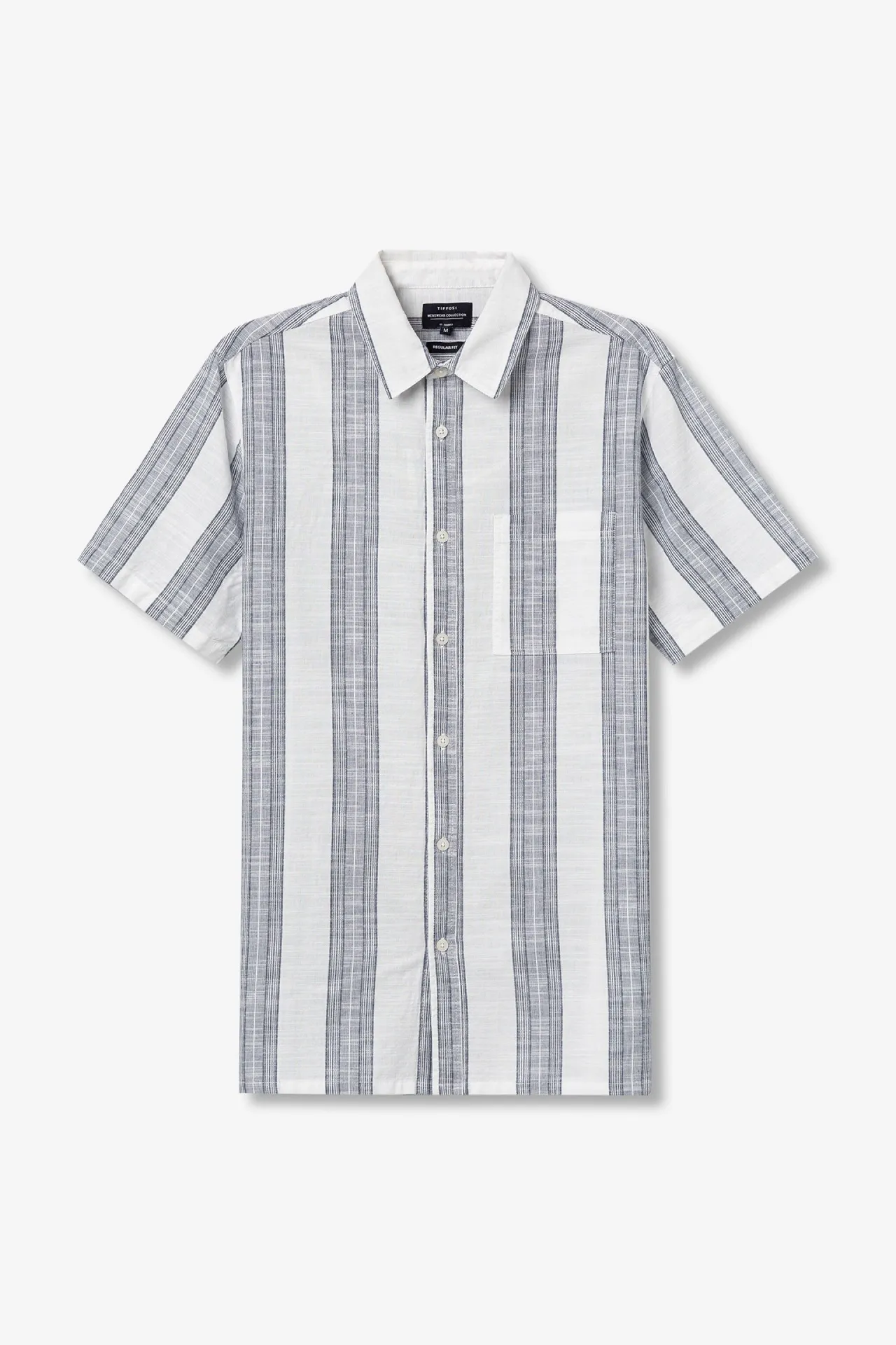 Camisa de manga corta para hombre con patrón recto, confeccionada en 100% algodón. Su diseño de rayas verticales y tejido ligero la convierten en una prenda fresca y versátil para los looks de primavera y verano.