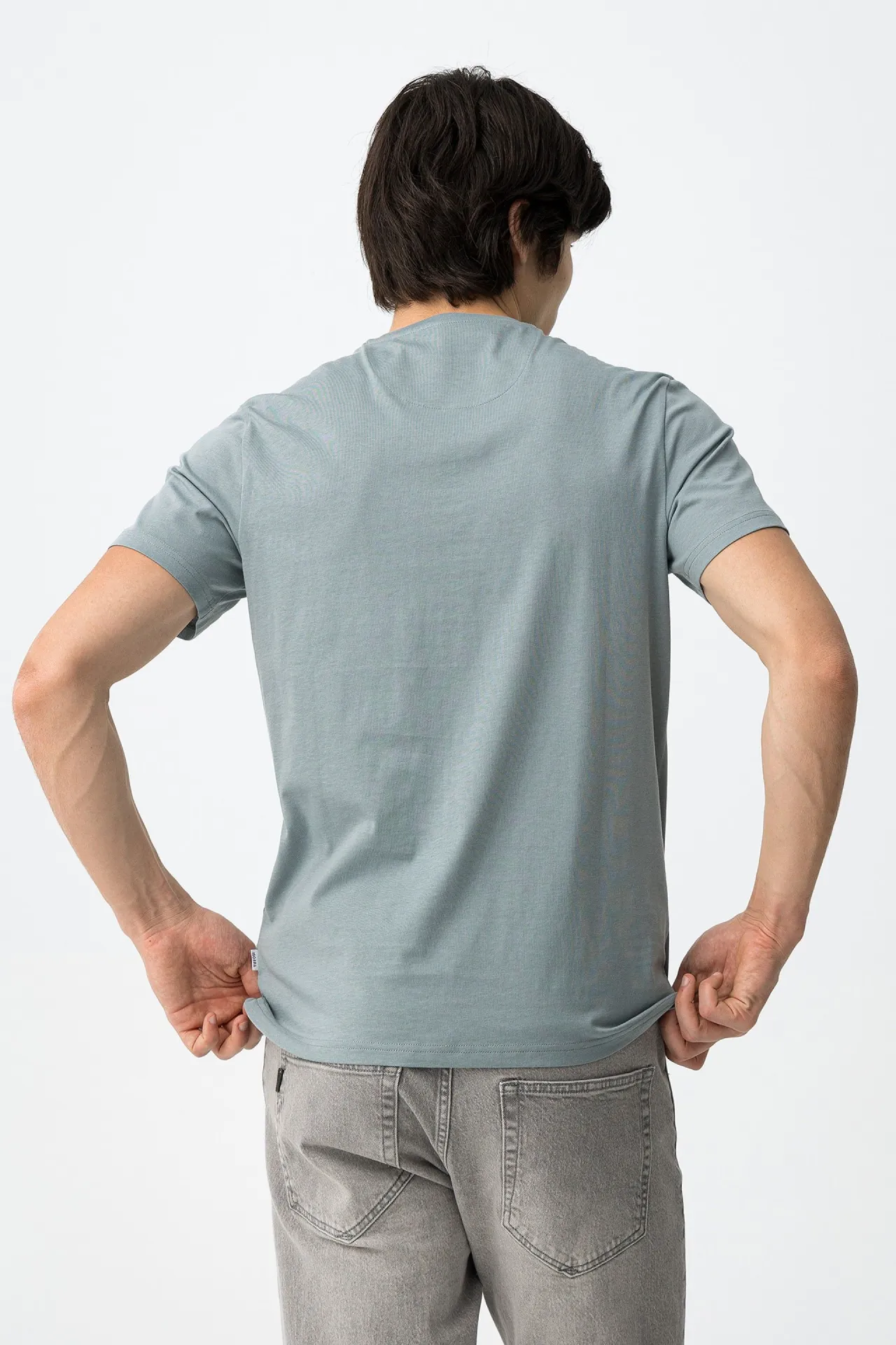 Camiseta básica de hombre en algodón 100%, con corte regular fit, cuello redondo y manga corta. Cómoda, versátil y fácil de combinar, ideal para el uso diario.