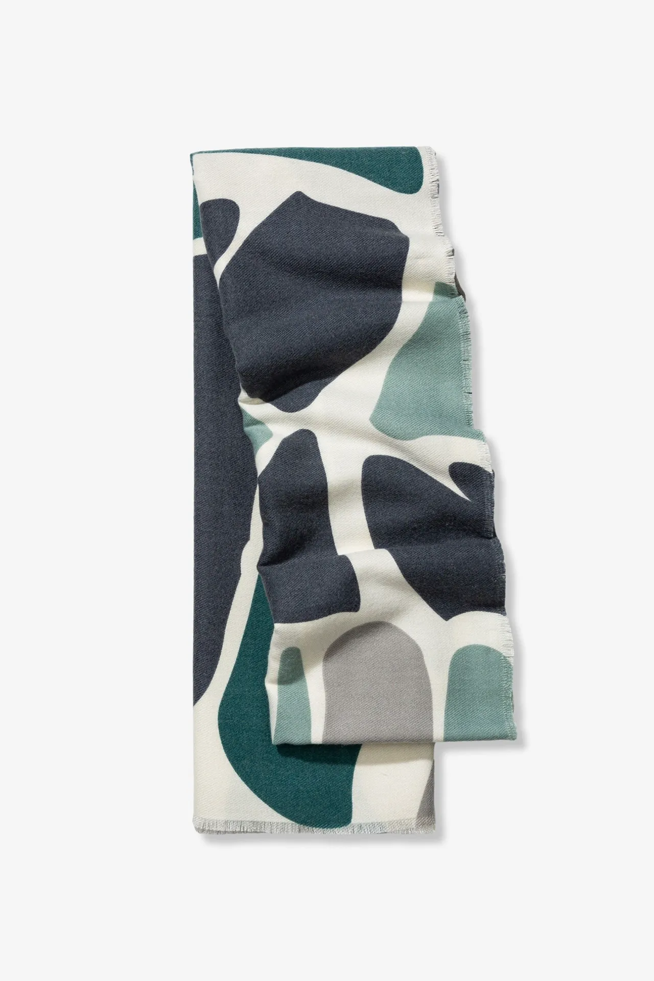 Pañuelo con estampado abstracto en tonos verdes y grises, con bordes deshilachados y tacto suave. Un complemento elegante para elevar tus looks de temporada.