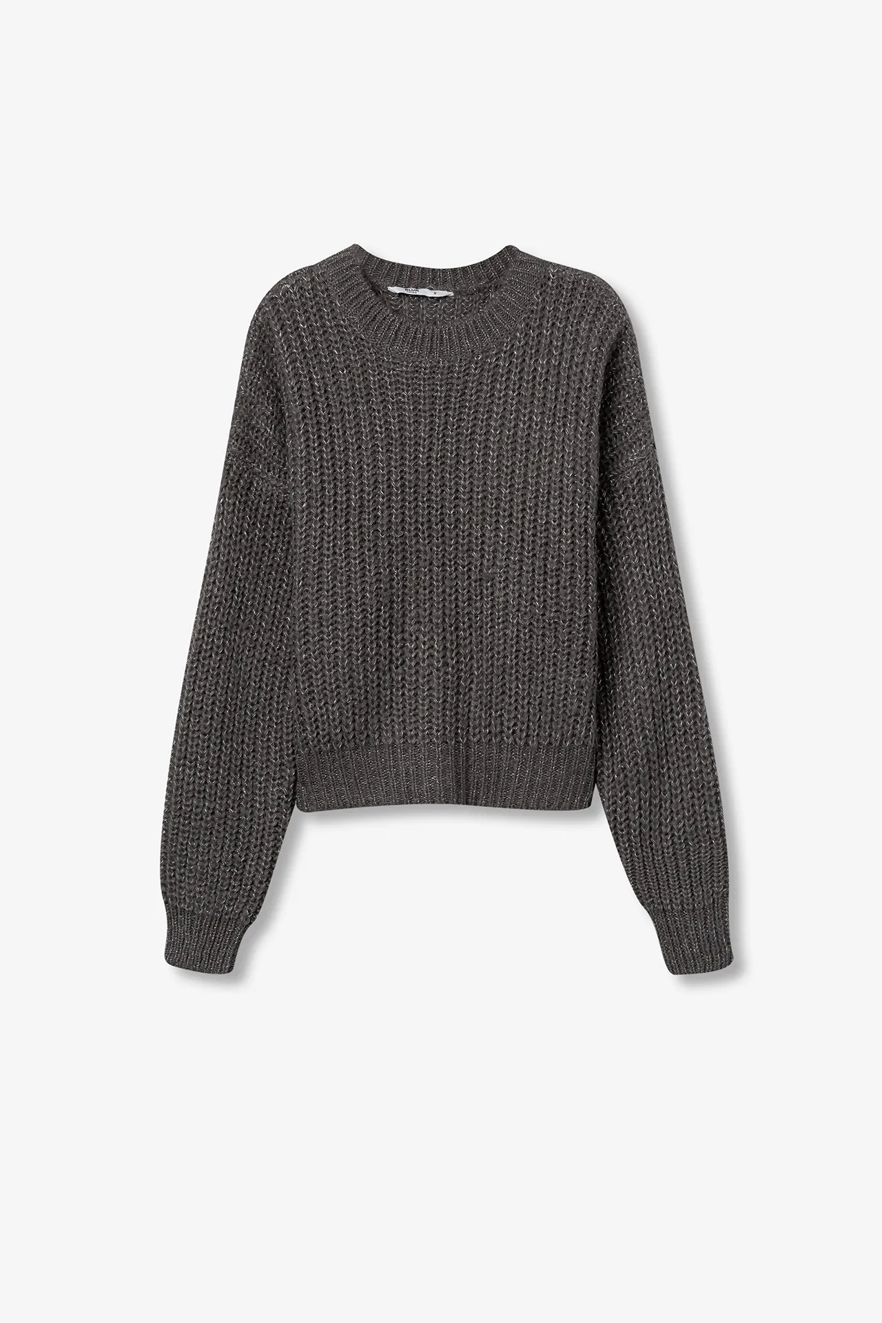 Este jersey crop de chica combina estilo y comodidad con un diseño actual de corte ancho y patrón relajado. Su confección en punto grueso entrelazado con hilos metálicos crea un sutil brillo que le aporta un aire juvenil y sofisticado. Perfecto para quienes buscan destacar con un toque especial sin renunciar al confort diario. El diseño corto lo convierte en una prenda muy versátil, ideal para llevar con pantalones de tiro alto o faldas de tendencia.