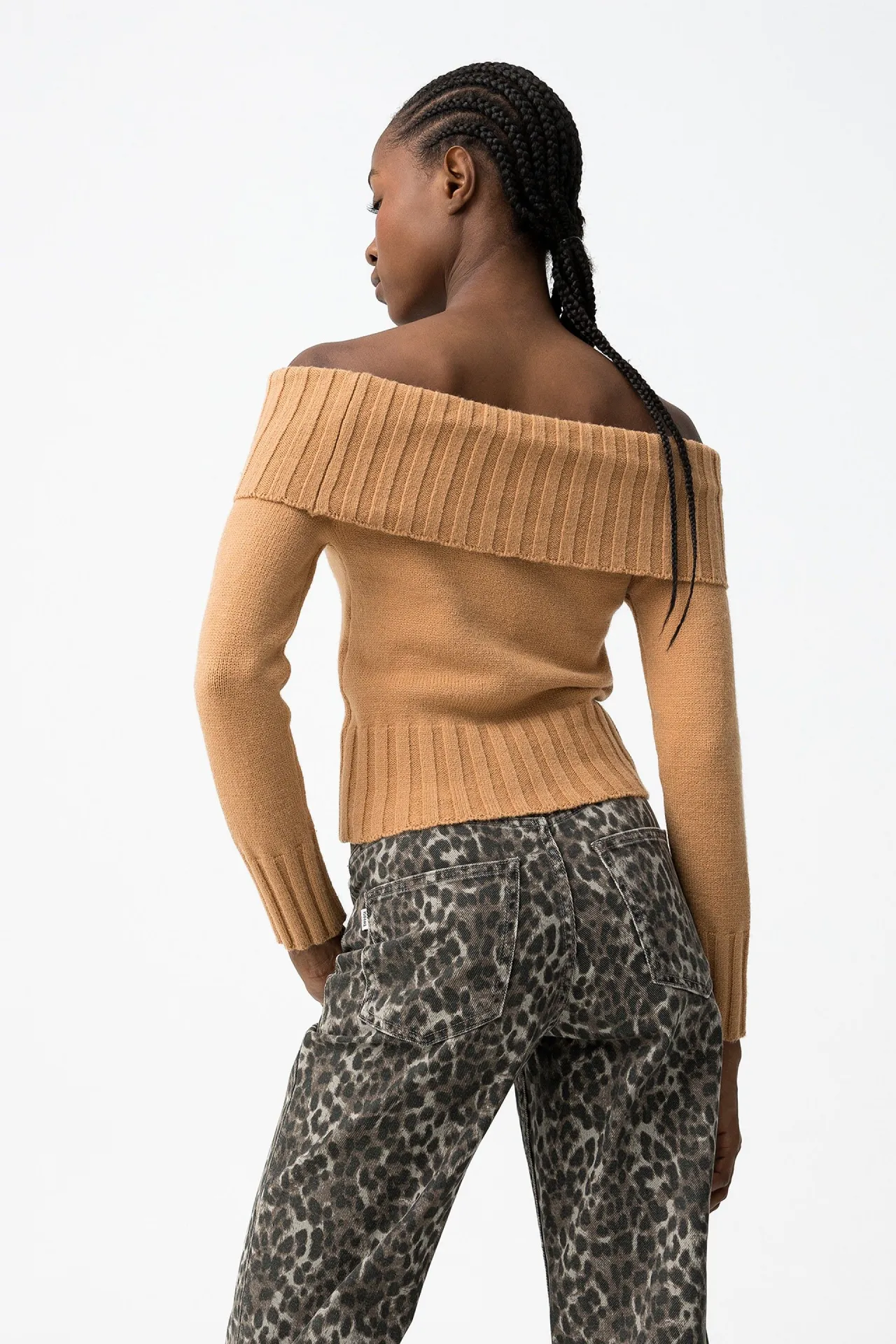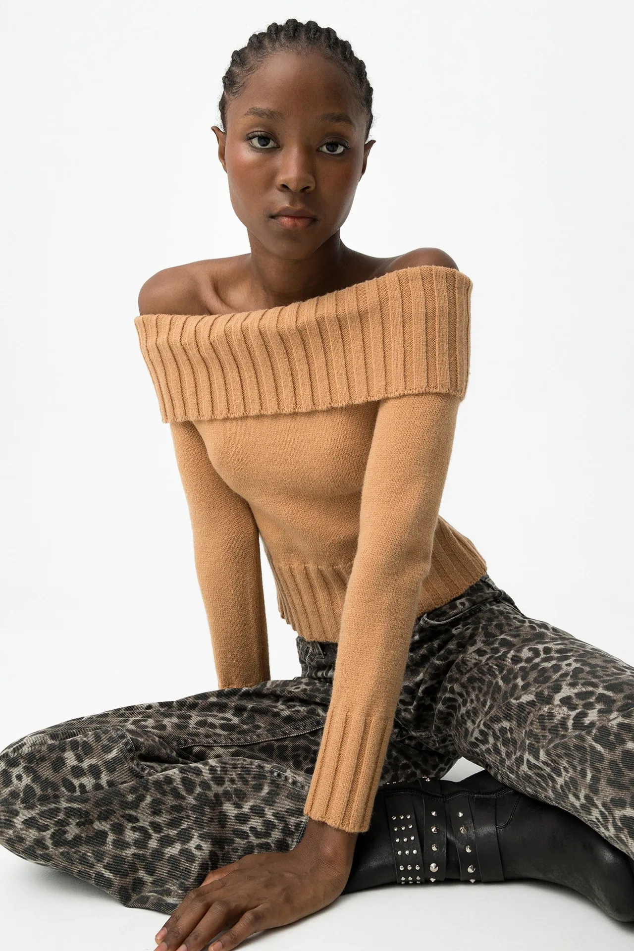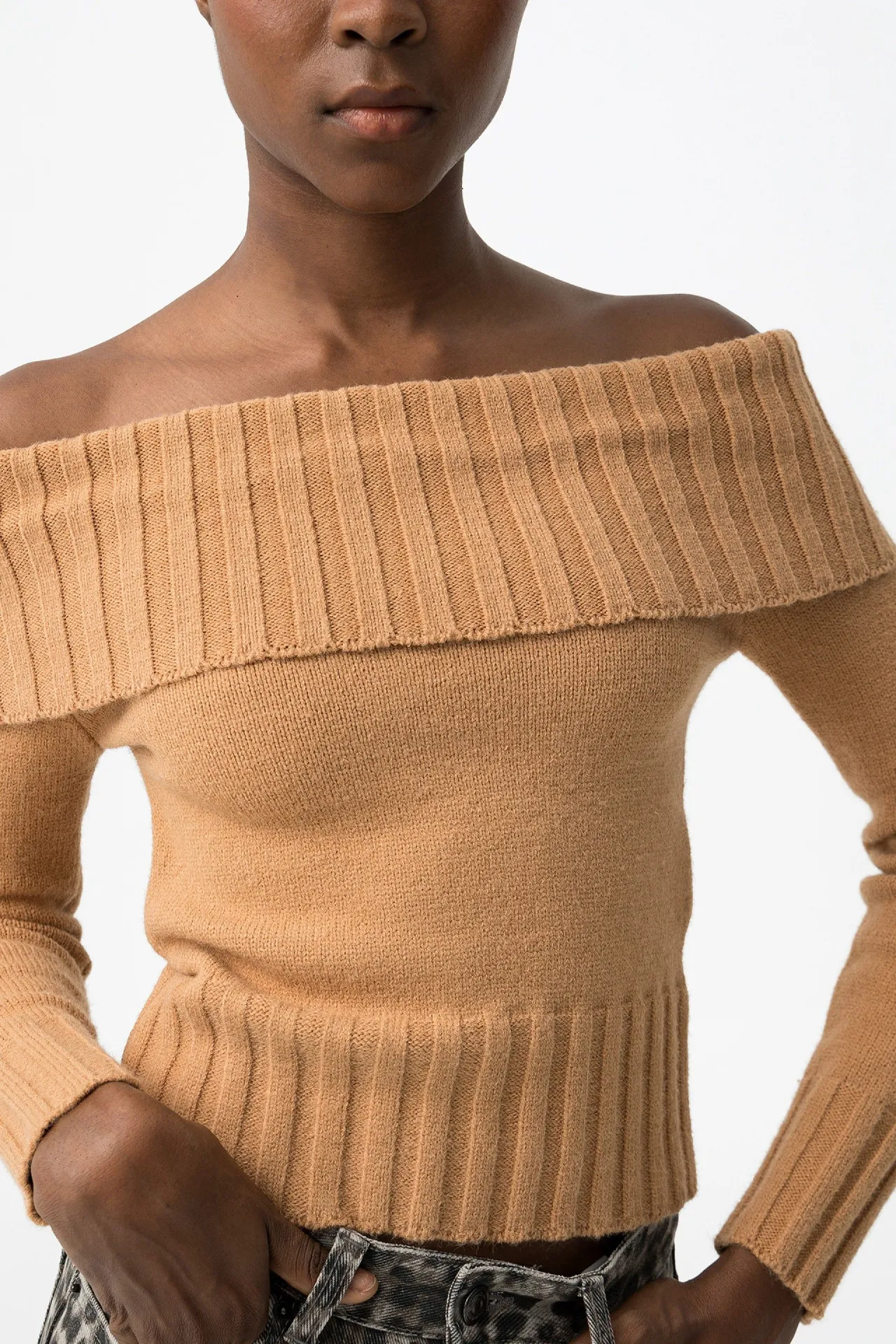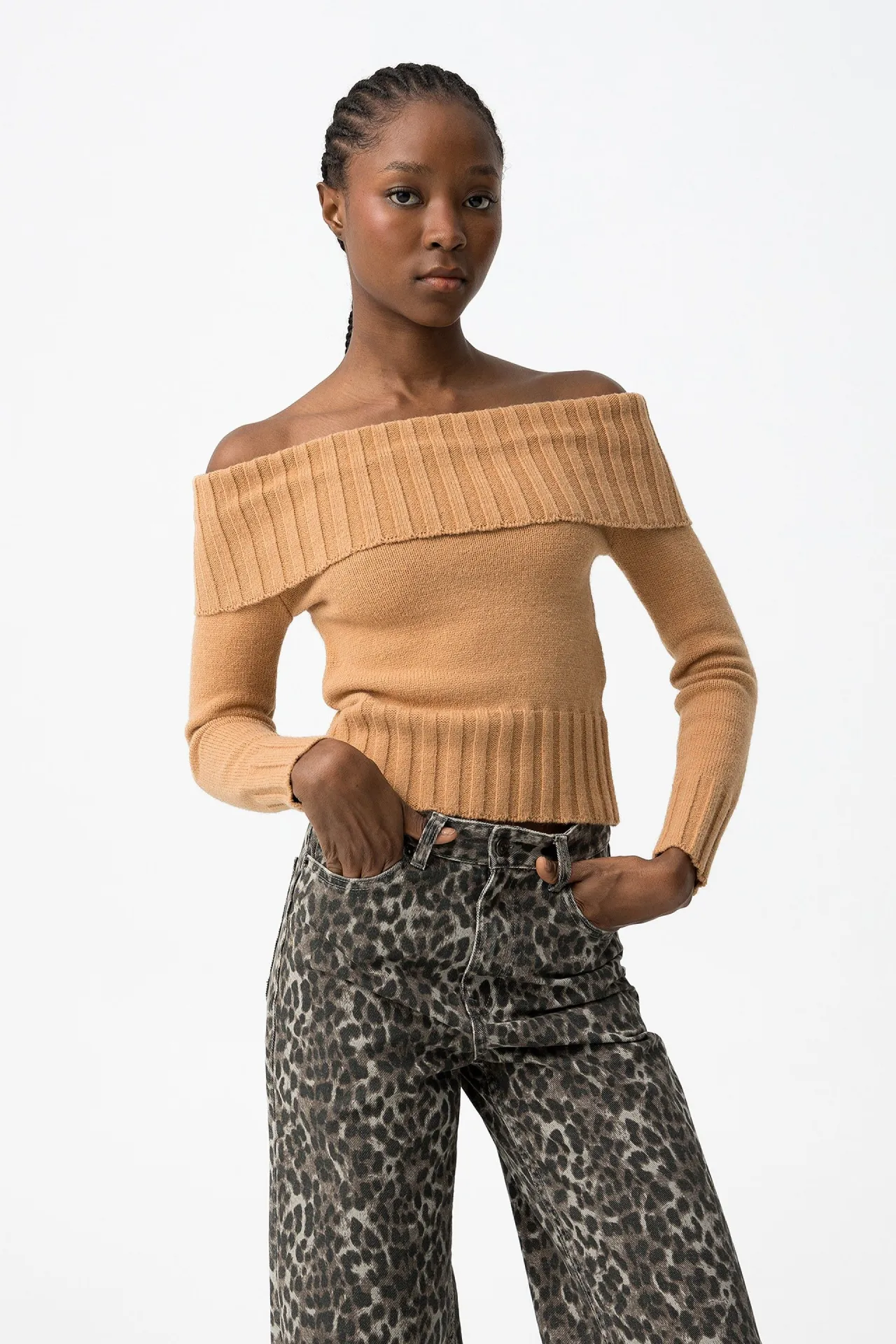 Jersey slim fit de chica con escote barco, manga larga y acabado cropped en canalé. Cómodo, cálido y con un diseño femenino ideal para el entretiempo.