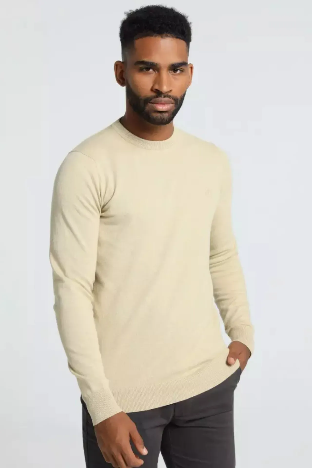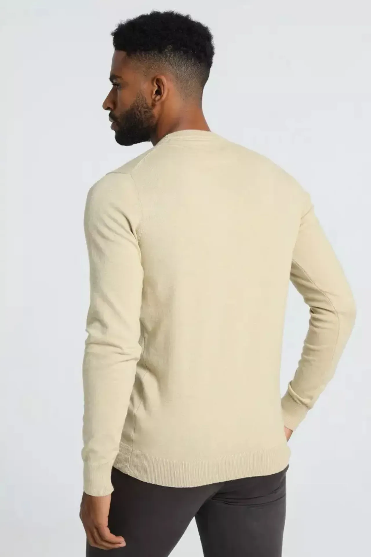 Jersey fino para hombre con cuello caja y logo bordado en el pecho. Suave, cómodo y resistente gracias a su mezcla de algodón y nylon. Disponible en beige y verde.