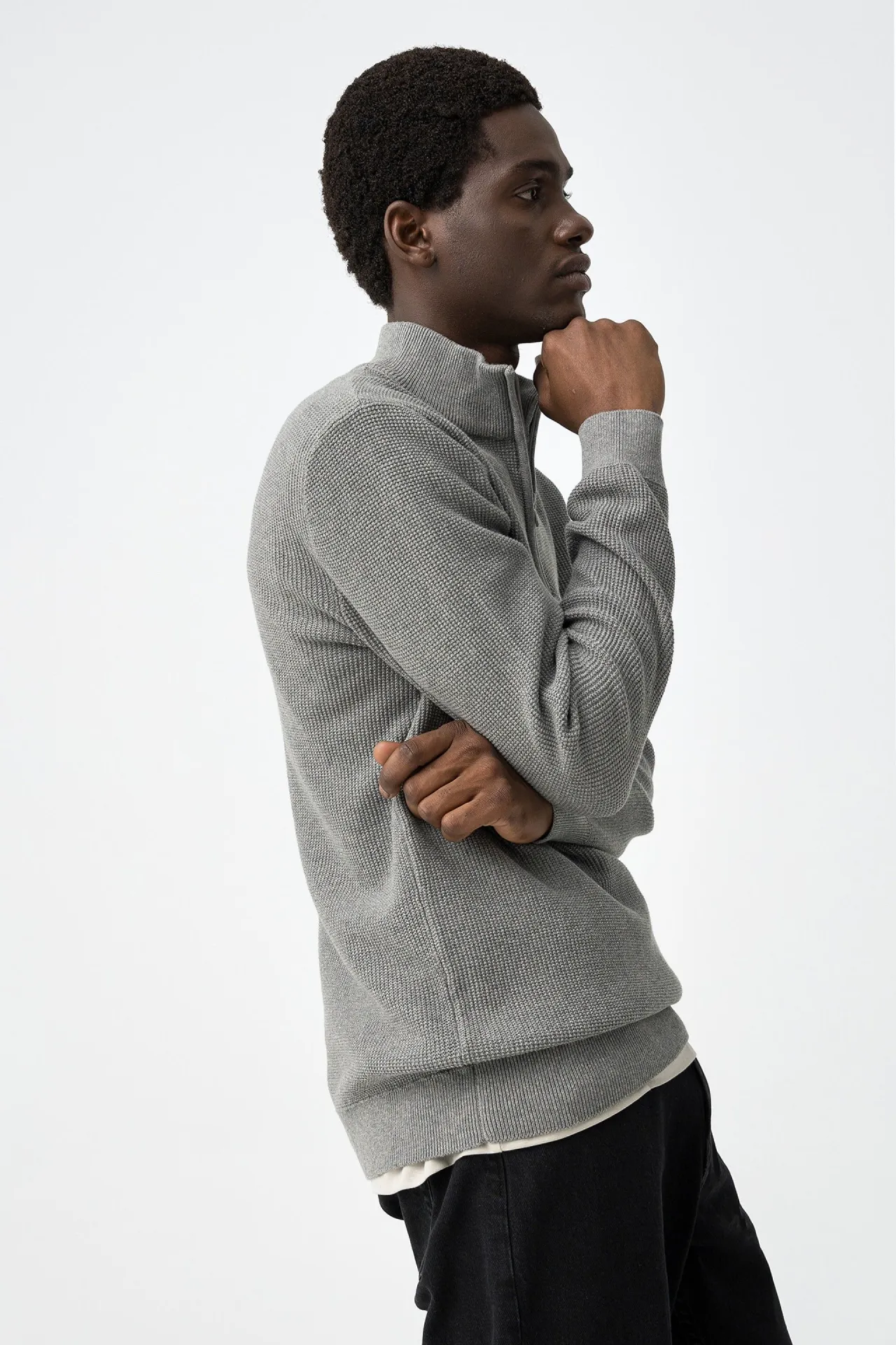 Jersey media cremallera de hombre con cuello alto – en gris y beige