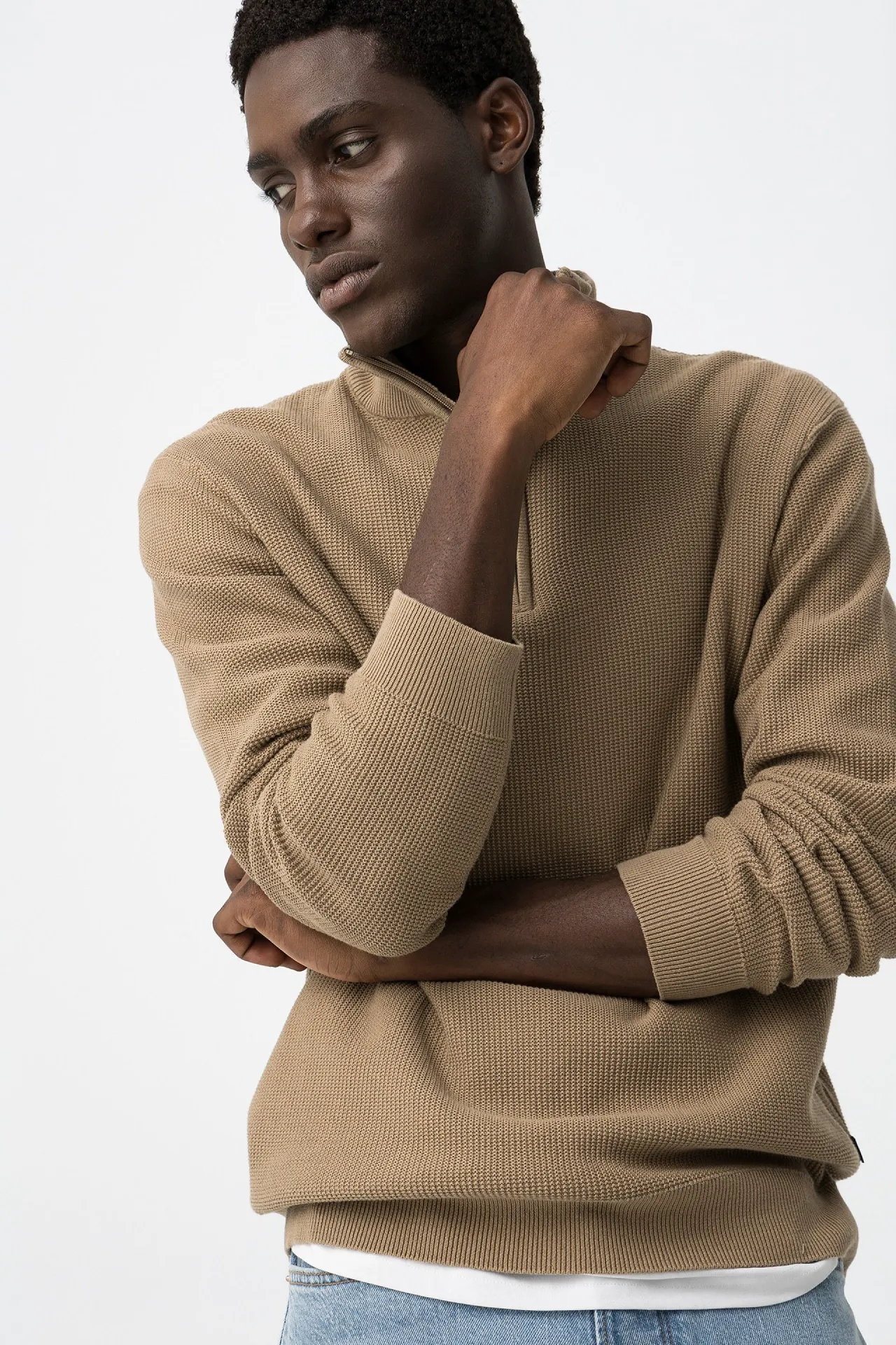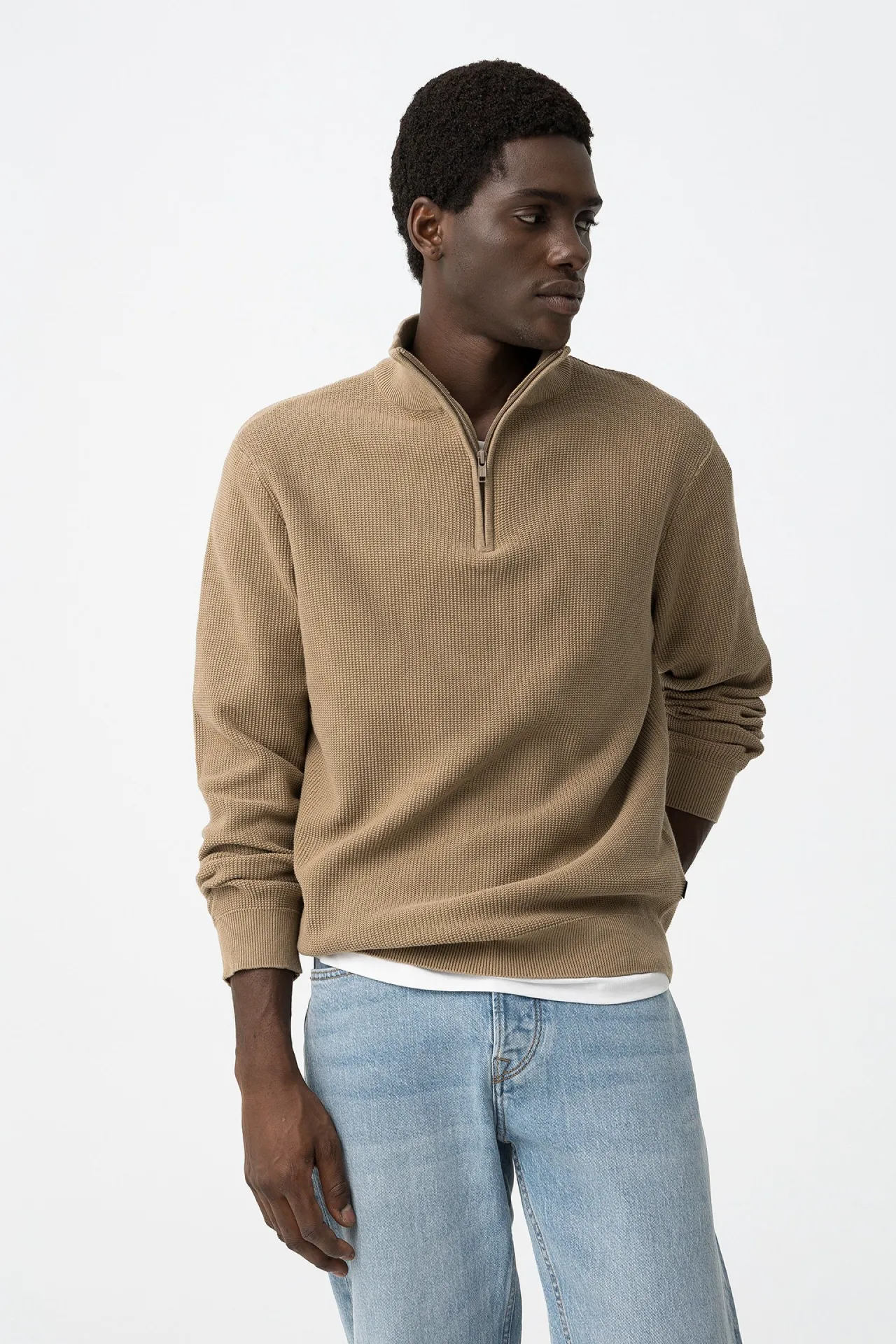 Jersey media cremallera beige para hombre