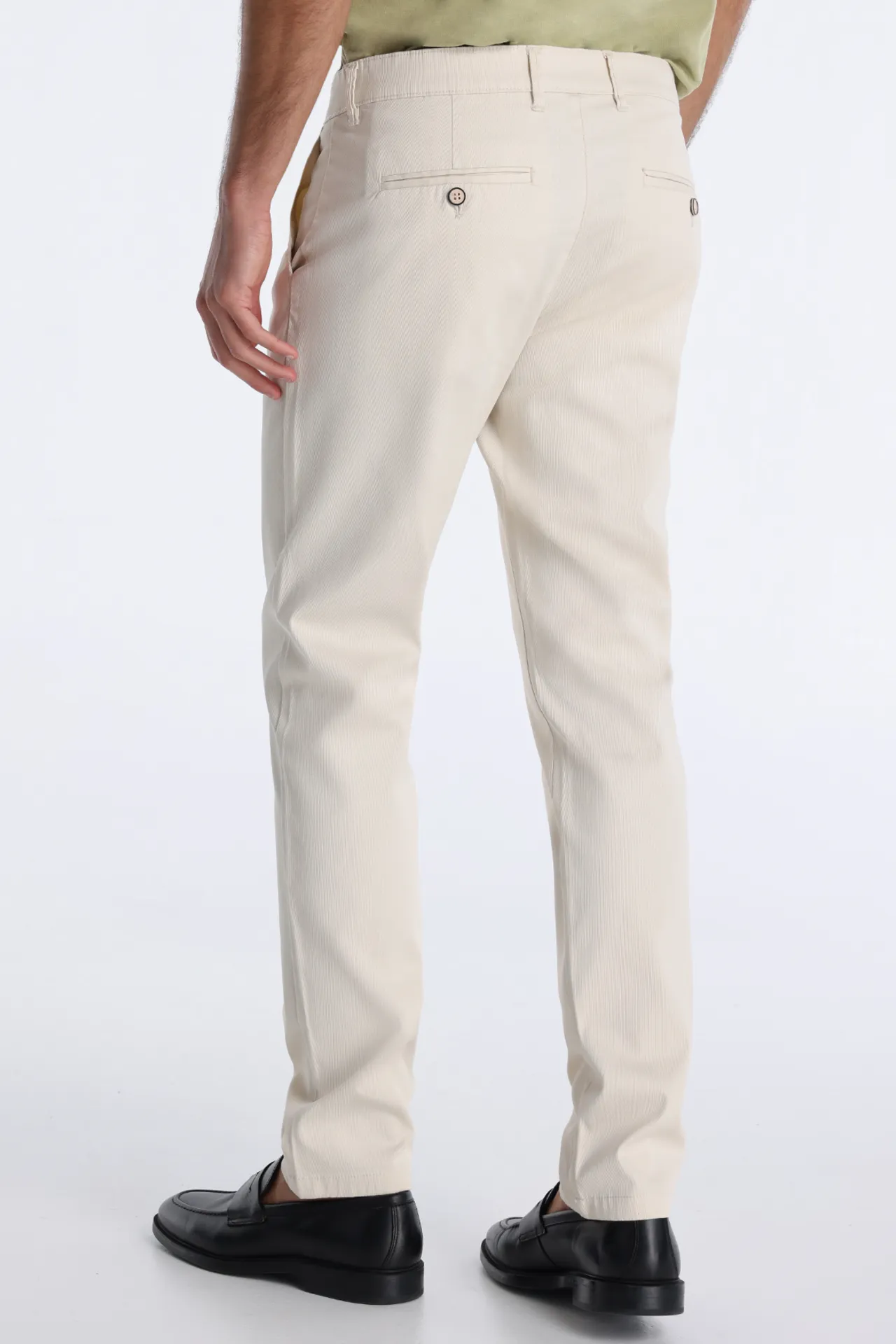 Pantalón chino blanco roto slim fit, ligero, transpirable y con elasticidad. Una opción elegante y versátil para looks de verano.