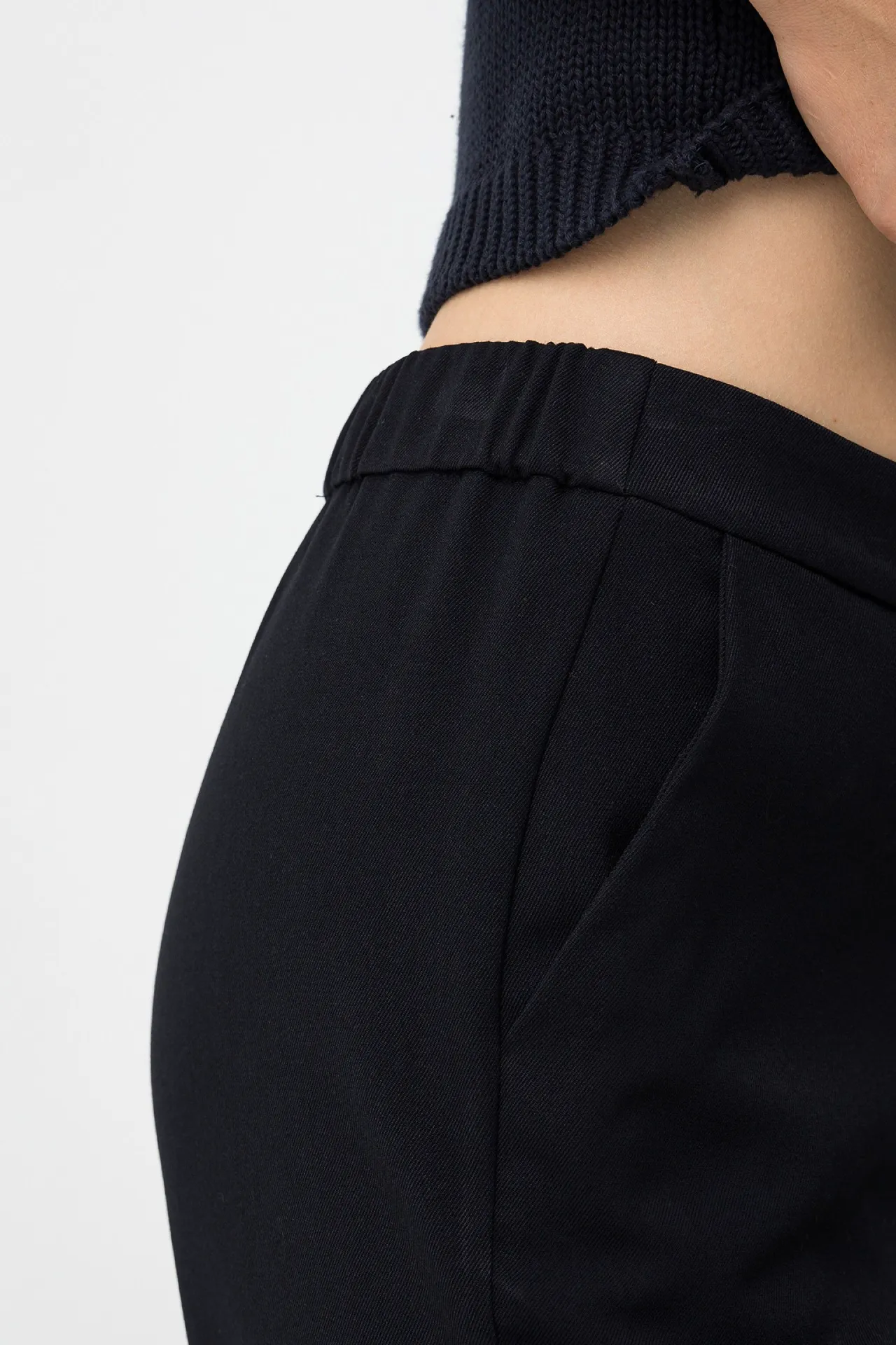 El pantalón en azul marino aporta un aire más formal y refinado. Perfecto para la oficina, reuniones o eventos, se puede combinar fácilmente con americanas, camisas blancas o jerseys de punto. Un color versátil que nunca pasa de moda.