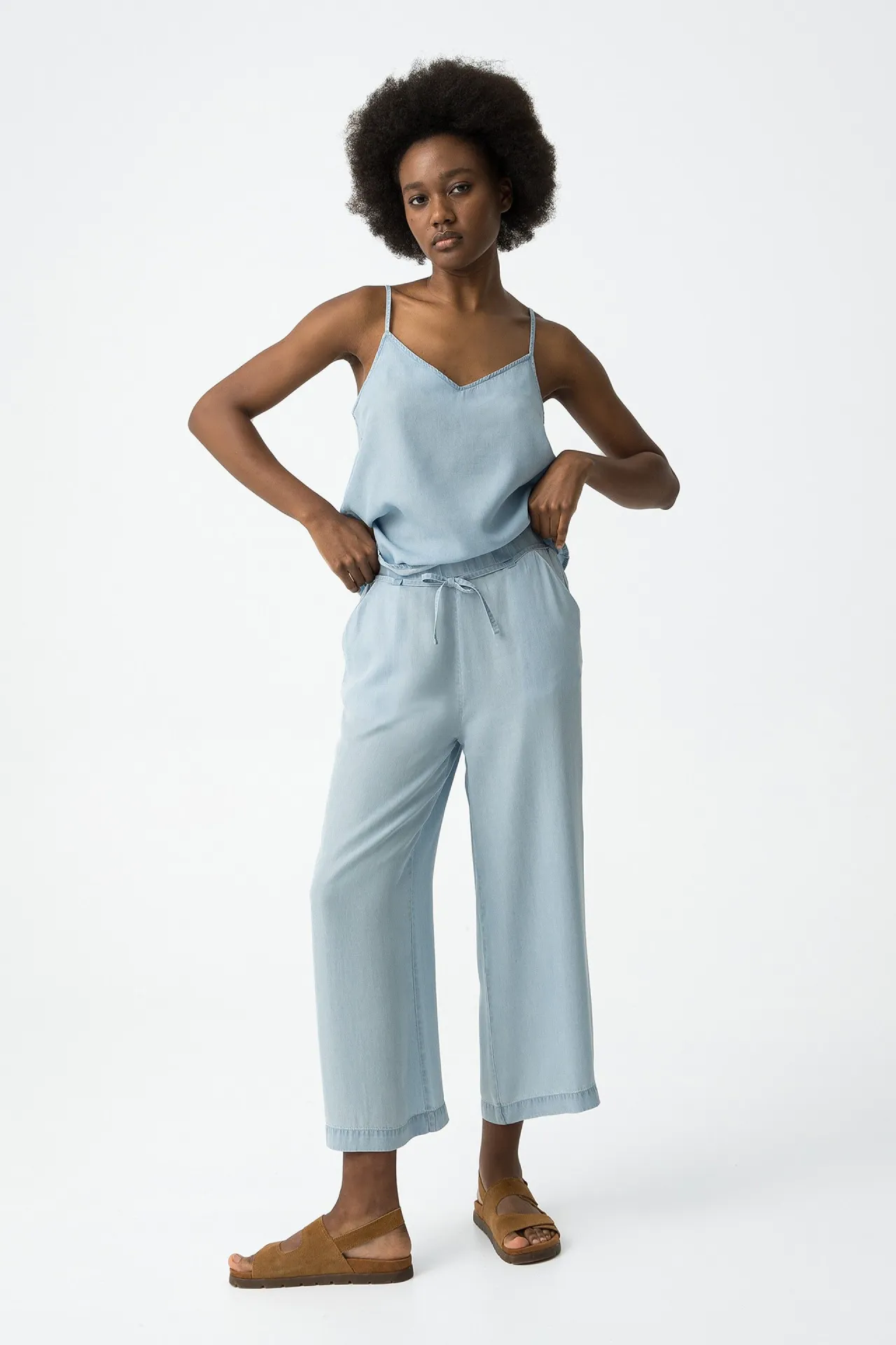 Diseñado para quienes buscan versatilidad y sofisticación, este pantalón lyocell de tiro medio es la opción ideal para un look relajado pero con estilo. Gracias a su confección en 100% lyocell, ofrece una textura suave y transpirable, asegurando frescura y comodidad durante todo el día. Su diseño fluido permite un ajuste relajado, adaptándose a diferentes tipos de silueta con elegancia.