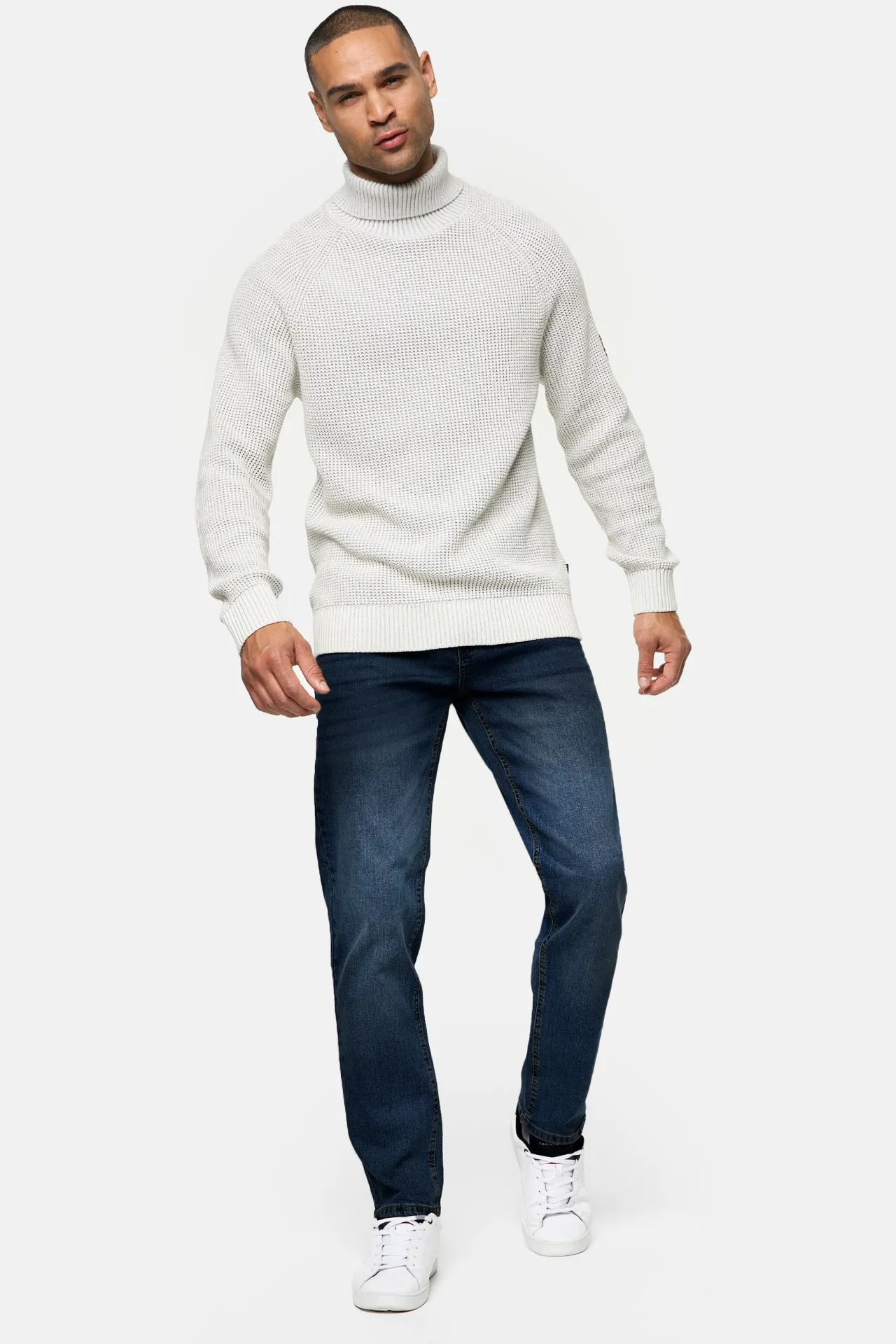 El vaquero oscuro es un clásico atemporal que combina con todo. Ideal para llevar con camisas o jerseys en tonos neutros, logrando un look elegante y versátil.