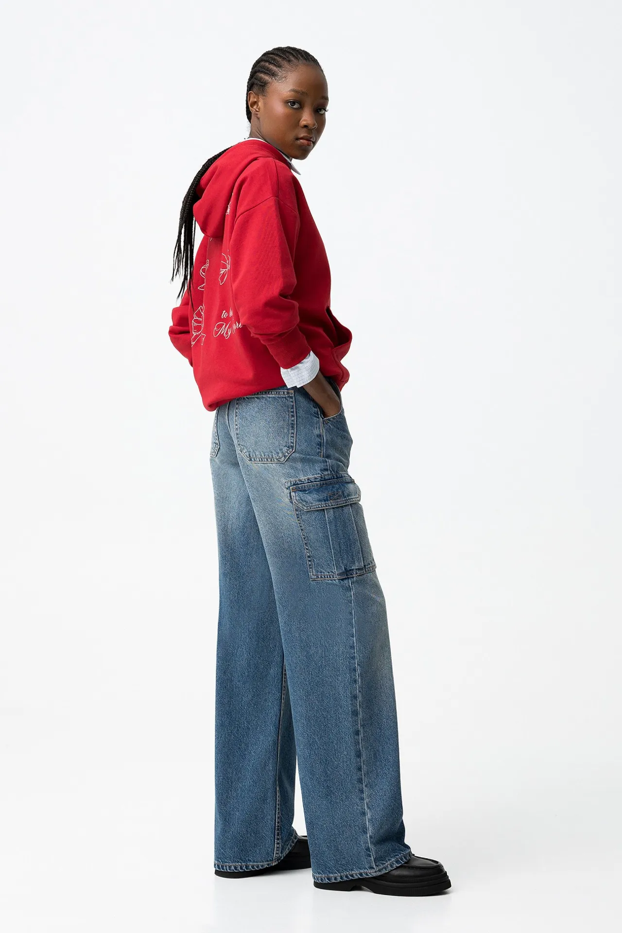 Este vaquero wide leg redefine el estilo casual con su silueta ancha y su cintura alta que realza la figura sin renunciar a la comodidad. Confeccionado en 100% algodón, presenta un tejido denim resistente y suave, ideal para el día a día. Sus bolsillos laterales de plastrón con solapa aportan un aire utilitario y contemporáneo, mientras que los cinco bolsillos clásicos y el cierre de cremallera oculta con botón metálico completan su diseño funcional.